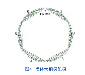 7)井筒墻體模板采用有弦桿的定型鋼模板+250 mm的楔板形成封閉的組合鋼模板。