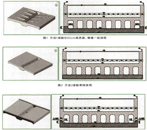 目前常規使用的底板與流道側墻間施工縫設置方法主要有以下兩種: