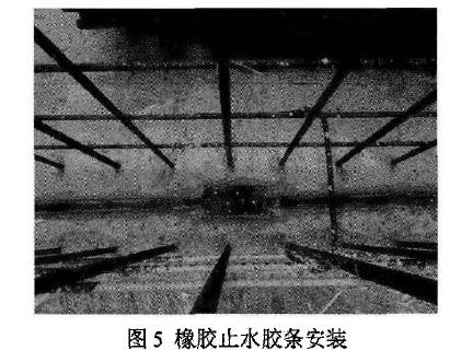 (2)遇水膨脹橡膠止水條粘貼基面處理:為保證水平施工縫粘貼遇水膨脹橡膠止水條的基面平滑,在基礎底板混凝土初凝之前,就要在水平施工縫的中部,即預留的兩排外墻豎向鋼筋的中間位置,沿外墻水平走向壓埋一塊寬SOmm,厚( 2050)~的木質或塑料板,長度沒有特殊要求。在混凝土終凝之前,將壓埋的木質或塑料板取出,這樣在基礎底板混凝土的表面預留施工縫位置形成一條寬(3040) mm,深((20^-30) mn。的光滑凹槽,用于放置遇水膨脹橡膠止水條;或者,不在基礎底板混凝土中埋木質或塑料板,僅在混凝土終凝之前,在固定遇水膨脹橡膠止水條的位置,用抹刀將棍凝土修整平滑。