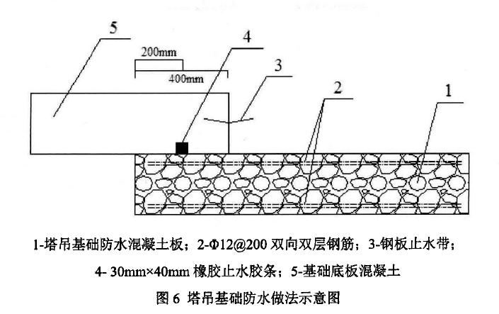 圖6是一種塔吊基礎新作法。該作法施工簡便,防水效果好,己在多個城市地下工程中得到應用。