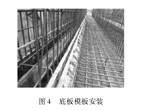 設置底板鋼筋保護層墊塊及定位鋼筋,安裝底板底層鋼筋并綁扎牢固,設置馬凳鋼筋并定位牢固,安裝底板上層鋼筋。在鋼筋安裝時,先按設計要求的間距劃線標識再進行鋼筋擺放及綁扎。