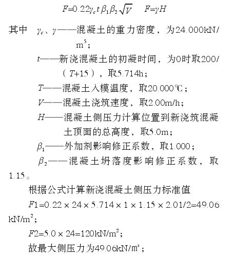 新澆混凝土的側向壓力計算公式為下式中的較小值