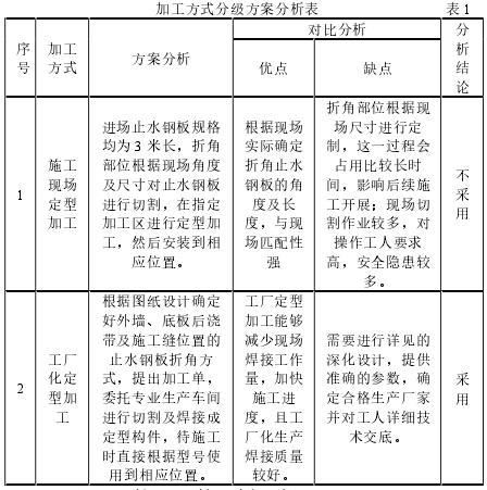 施工工藝論證選擇提出方案 通過對止水鋼板施工工藝進(jìn)行專題研討會,對查新借鑒的內(nèi)容進(jìn)行梳理,提出止水鋼板施工的總體方案。
