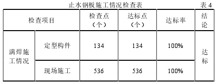 效果檢查 通過對止水鋼板施工工藝進(jìn)行創(chuàng)新,對融建財富時代廣場項目后澆帶及部分地下室外墻施工縫處的止水鋼板施工情況進(jìn)行檢查,基礎(chǔ)后澆帶及外墻施工縫位置的止水鋼板全部實現(xiàn)了滿焊。