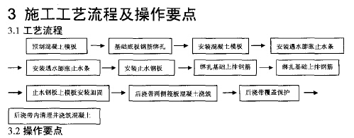 1、薄底板基礎后澆帶止水鋼板處側模施工方法特點薄底板基礎后澆帶止水鋼板處側模施工方法通過在止水鋼板的下部采用與基礎底板混凝土同強度等級的混凝土預制板作為側模,在基礎后澆帶下部鋼筋綁扎完成后,固定安裝止水鋼板下的混凝土模板,并預留安裝膨脹止水條的凹槽,筏板中部安裝止水鋼板,在后澆帶處起到雙道設防的作用,止水鋼板上部采用梳子狀多層模板支設,采用本做法施工方法非常方便,大大節約時間,而且節約很多人工拆除模板所需要的用工,保證施工質量,減少了滲漏的隱患。