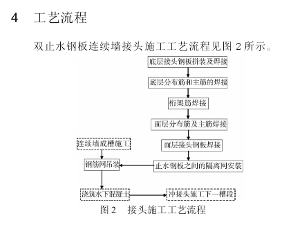 雙比水鋼板連續(xù)墻接頭的工藝原理是接頭部位墻體的內(nèi)外側(cè)采用兩塊鋼板作為接頭比水,通過(guò)阻比地下水的滲流路徑達(dá)到比水的目的,鋼板之間采用鋼筋網(wǎng)結(jié)介快易收日網(wǎng)作為混凝土的隔離網(wǎng),以阻擋先施工單元槽段混凝土澆筑時(shí)流入相鄰槽段,避免后施工槽段成槽施工困難和可能造成接頭部位比水鋼板的比水作用失效。接頭在現(xiàn)場(chǎng)按設(shè)計(jì)圖紙制作,與鋼筋網(wǎng)焊接成整體,整體起吊、下放,雙比水鋼板連續(xù)墻接頭起到定位、防滲、圍護(hù)及連接的作用,可林代普通工字鋼接頭,見(jiàn)圖1所示。