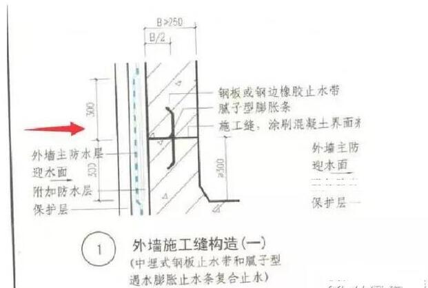之所以要指明迎水面有二個(gè)原因:一是因?yàn)橐?guī)范規(guī)定:一級防水時(shí)施工縫一般除了止水帶還要采用另外一種防水措施的,而且有些防水措施是要做在迎水面的,所以要指出迎水面的方向。二是凹口朝向?qū)τ诘装濉㈨敯寤炷翝仓|(zhì)量有很大影響。
