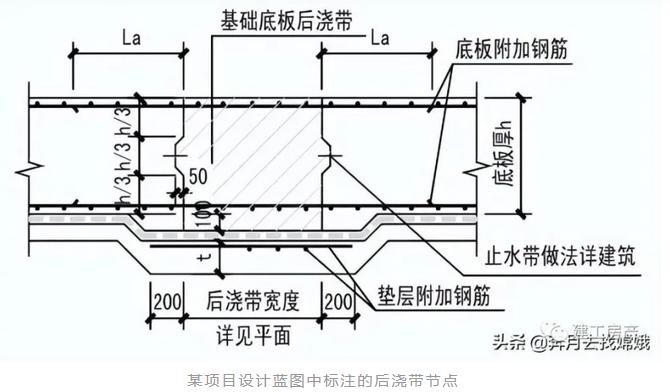 疑問:上述節點畢竟是引用于“超長大體積混凝土結構跳倉法技術規程”,從嚴謹的角度來說,是否可以應用于所有的基礎底板后澆帶或施工縫,值得商榷。