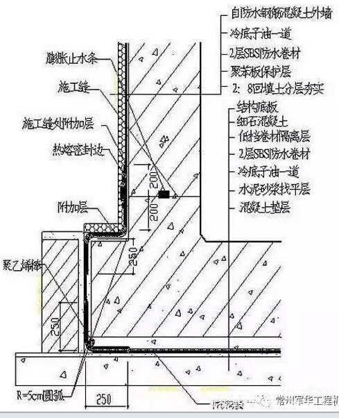 4)底板及防水卷材錯(cuò)槎接縫